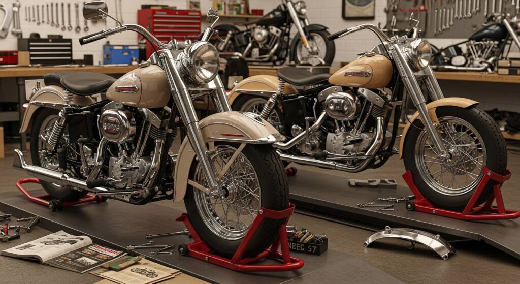 旧車ハーレーの価値を決める重要な要素の一つが「純正パーツの有無」です。特にパンヘッドの1948-1965年モデルやショベルヘッドの初期型では、純正パーツがわずかな傷や劣化があっても、安易に社外品に交換するべきではありません。修復可能な純正パーツは専門家の手で丁寧に修復し、価値を維持することが大切です。